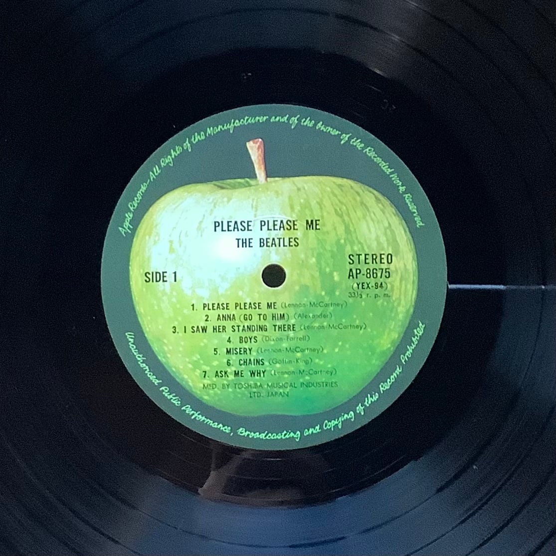 1963年リリースのデビュー・アルバム「PLEASE PLEASE ME」。1966年、来日を記念して、当時主流であったモノラルに対して、新しいステレオで、ジャケット、曲順を変更してリリースされた日本独自企画盤。こちらは1969年のリイシュー。ペラジャケ。