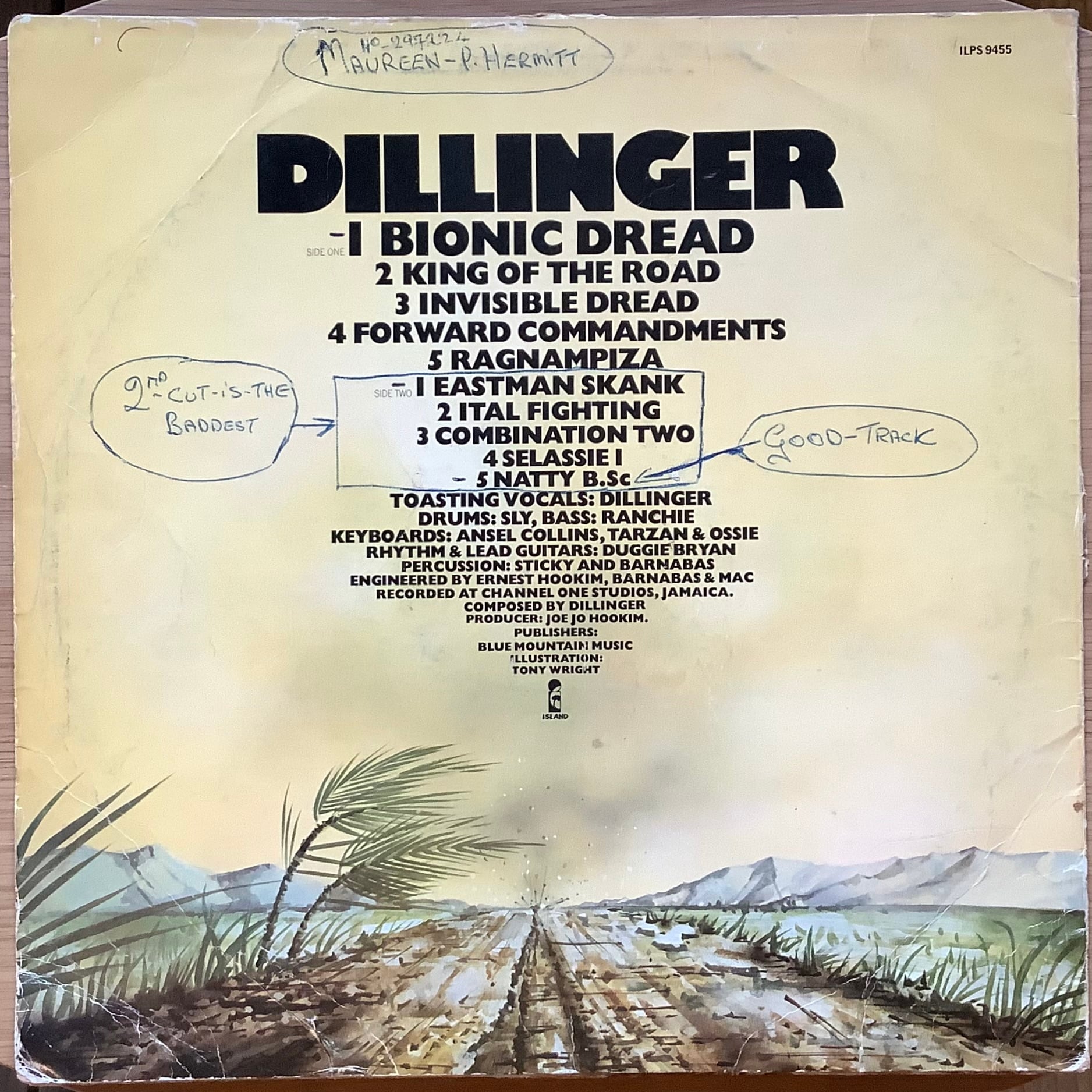 ジャマイカ人ROOTS DEE JAYを代表する一人 DILLINGER。1976年リリース作。JO JO HOOKIMがプロデュースし、CHANNEL ONE STUDIOで録音。バックはSLY DUNBARら、THE REVOLUTIONARIES関連のメンバーが固める。言うことなしのメンツ。DILLINGERのラフで熱いトースティングがカッコいい。