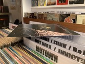 全体的にスレやリングウェア跡が見られます。4角、エッジ部分にスレや剥がれ、ヨレシワが見られます。表側右上にシールの剥がし跡があります