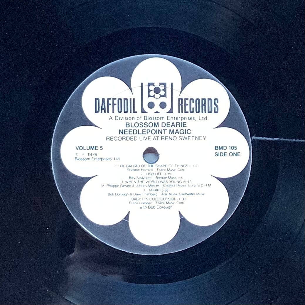 囁くように歌う、キュートな歌声が魅力の女性シンガー&ピアニスト BLOSSOM DEARIE。自ら設立したレーベルDAFFODILからリリースした1979年作。スタジオで行ったライブを収録。55歳の円熟味を増したBLOSSOMが、ピアノ伴奏でしっとりと歌う。「I’M HIP」、「SWEET GEORGIE FAME」等、彼女が慣れ親しんだ曲目を、茶目っ気を交えながらキュートに歌う、素晴らしい演奏。ほっこりできる一枚。