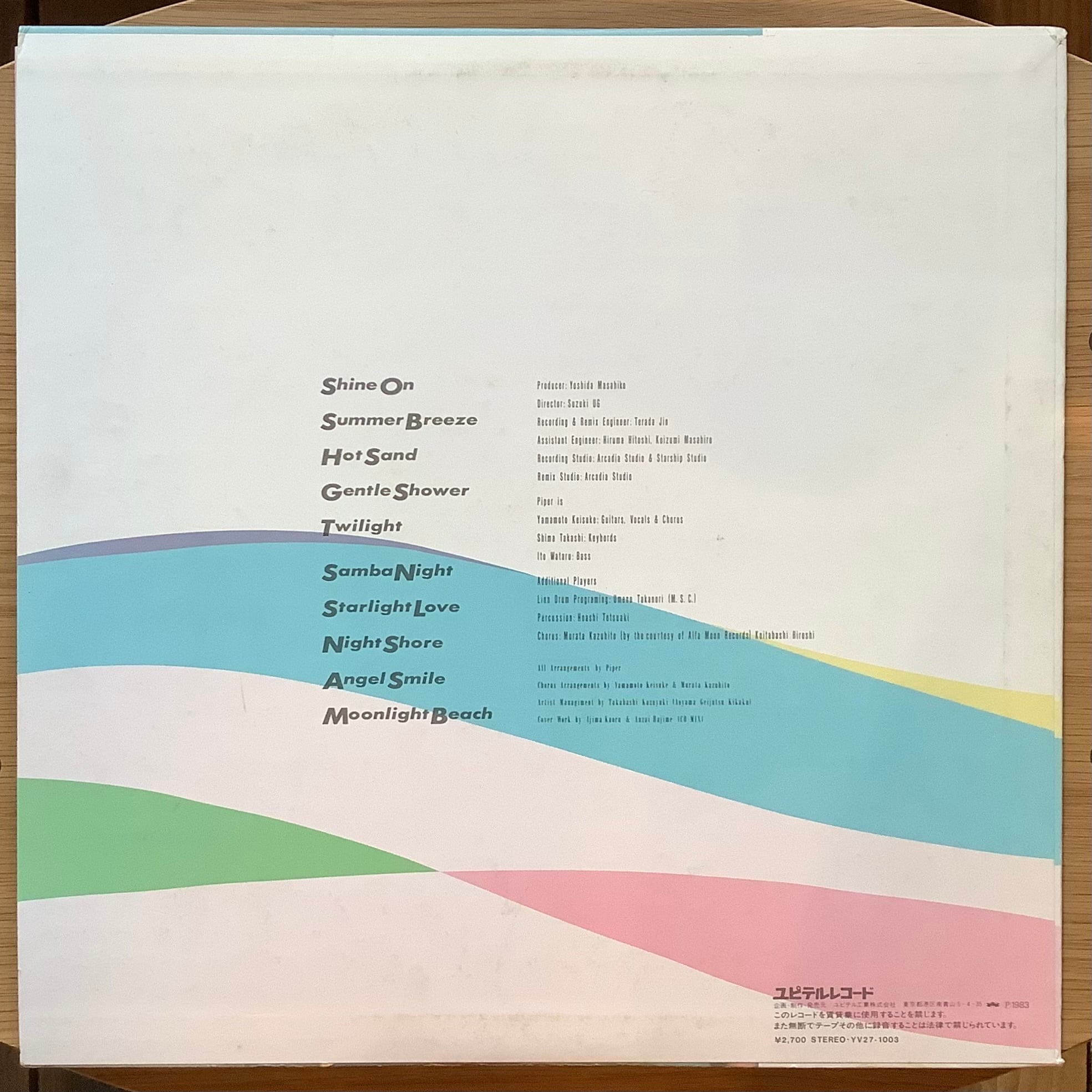 1980年、山本圭右(g,vo)を中心に結成されたポップ&フュージョン・バンド PIPER。旧メンバーが脱退し、志間貴司(key)、伊藤弥(b)の3人でリリースした1983年の2作目。村田和人がコーラス&コーラス・アレンジで参加。軽やかなメロウ・フュージョン「SHINE ON」や、山本圭右が歌う極上シティ・ポップ「SUMMER BREEZE」等、アルバムのどこに針を落としても夏のそよ風を感じる、まさにブリージンな一枚。シティ・ポップ名作中の名作。